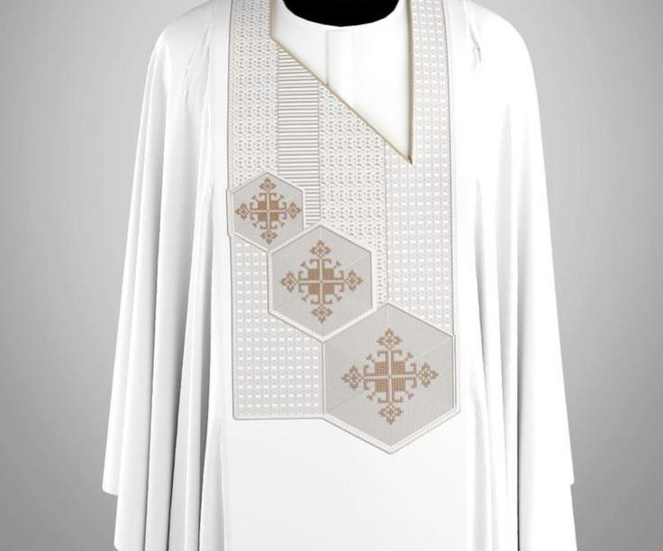 It is white agbada 3 quarter sleeve hand well made with original cashmere fabric, it is friendly to any type of skin. With monogram embroidery designs on it.